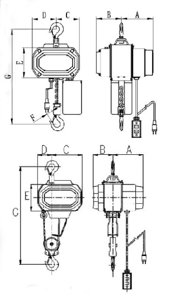 备注:电动葫芦的绳长分8米、12米、16米等各种长度,可按您的需求订制不同长度的链条。